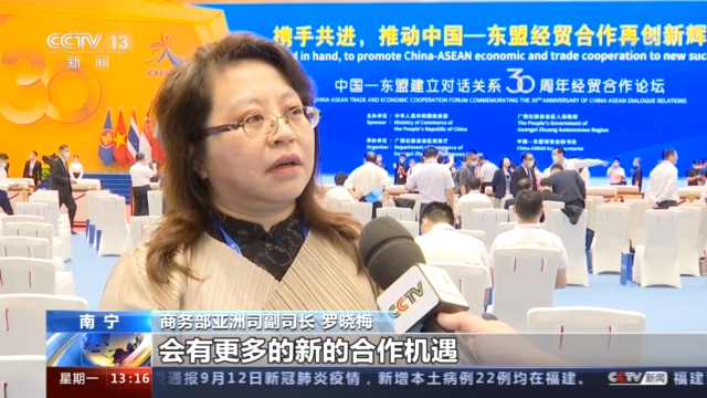 商务部亚洲司副司长 罗晓梅: 我们与东盟国家将在制造业、农业、基础设施、高新技术、数字经济、绿色经济等等领域,会有更多的新的合作机遇,共同构建更加紧密的中国-东盟命运共同体。