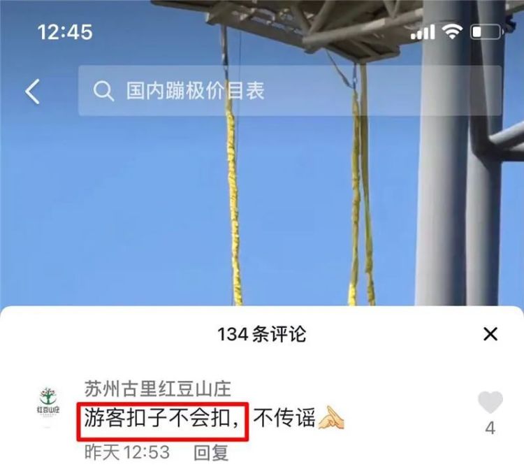9月20日,一段游客在苏州常熟红豆山庄蹦极被吊半空的视频在网上流传。