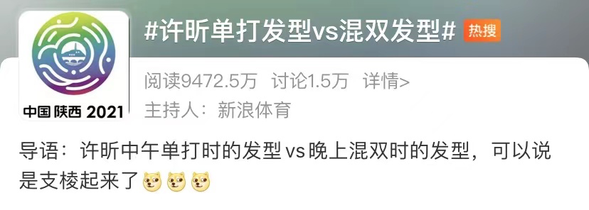 早在22日晚,许昕混双半决赛时的发型,就因和中午单打时不一样而冲上热搜。