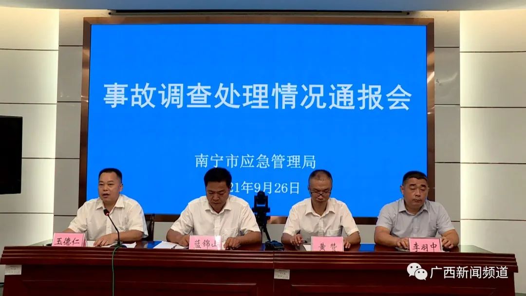 南宁市应急管理局副局长 党委委员 蓝锦山:对该起事故的16名责任人进行了处理。其中, 8名事故责任人分别给予党纪政纪处分,5人给予诫勉和作出书面检查,3名涉嫌犯罪的责任人被移送司法机关依法追究刑事责任,对事故责任单位广西中化明达勘察设计有限公司及其主要负责人彭伍连、南宁市城市建设投资发展有限(责任)公司及其主要负责人马跃腾分别做出了行政处罚、罚款共计158.5万元。同时,责令轨道运营单位涉事项目监理单位分别向市人民政府和市住建局作出书面检查。