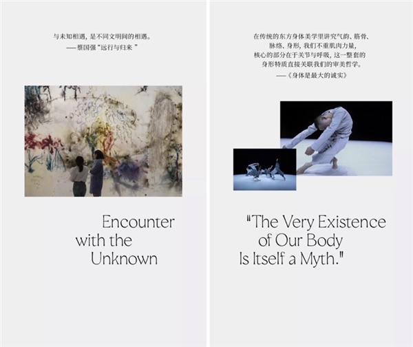第一期的主题,围绕“关注东方性”这个议题展开探讨与争辩。在这本杂志里观夏作为一个文化的探索者、提出“东方”命题,与一个个创作者们展开对话。从戏剧到雕塑、从舞蹈到摄影,从瓷器到美食…不一而足。内容并不泛泛而谈,读者可以从中洞察到,当代东方文化是如何发生并如何影响着我们身边的世界。曾与观夏创意总监Khoon共事过的当代艺术大家蔡国强,此次受邀讲述了远行西方后回归故土的经历对其当代绘画创作的启发;陶身体舞团联合创始人陶冶以展现东方身体之美而起舞;摄影师林舒走遍中国拍摄古塔……这些当代东方艺术家们的探索让人感动。