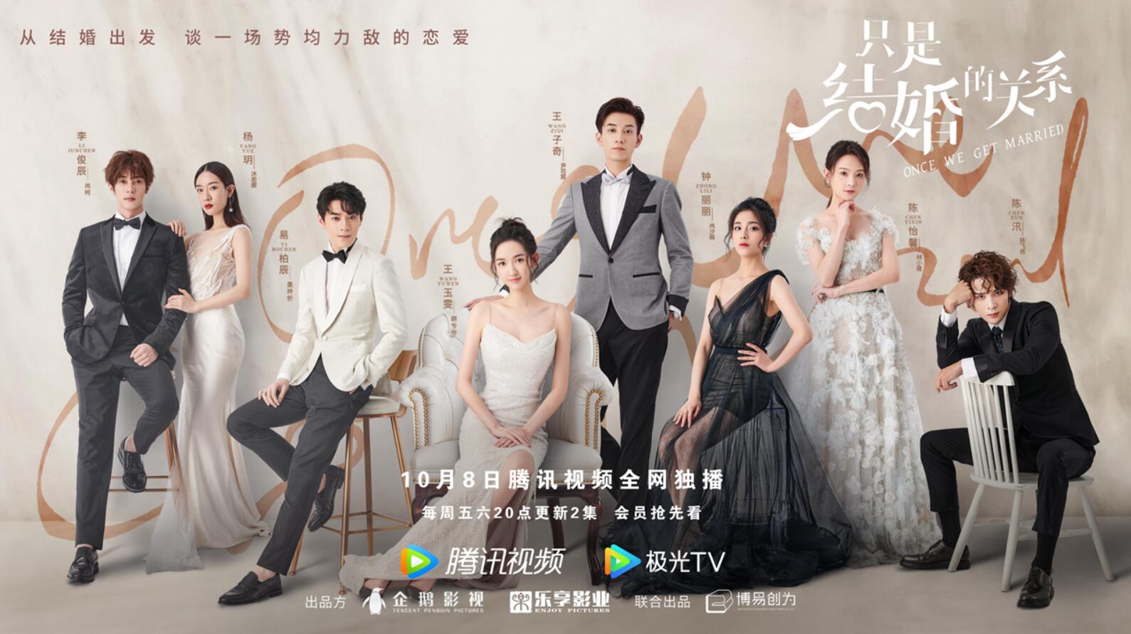 由企鹅影视、乐享影业出品,李尔云担任总制片人,王德亮担任联合出品人,黄星、刘志民、殷翠韩担任制片人,李遥波、初的见执导,尚梦璐、张骁编剧,王玉雯、王子奇领衔主演,易柏辰、钟丽丽、杨玥、李俊辰、陈怡馨、陈汛主演,季晨特别出演的都市时尚爱情剧《只是结婚的关系》今日官宣定档,并释放“Marry Me”定档海报与“先婚后爱”版定档预告。该剧将于10月8日20:00 腾讯视频全网独播,每周五六20点更新两集。该剧改编自香网小说《闪婚总裁契约妻》,讲述“小狐狸女”顾兮兮与“二哈霸总”尹司宸之间“阴差阳错的相遇,命中注定的相爱”的故事。