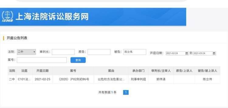 周到记者从上海法院诉讼服务网获悉,2月25日,上海第二中级人民法院将依法公开审理陈立伟涉嫌以危险方法危害公共安全一案。