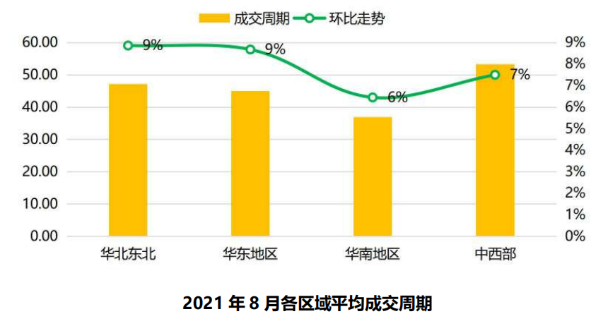 从各区域看,各区域成交周期分都较上一个月出现明显上扬。