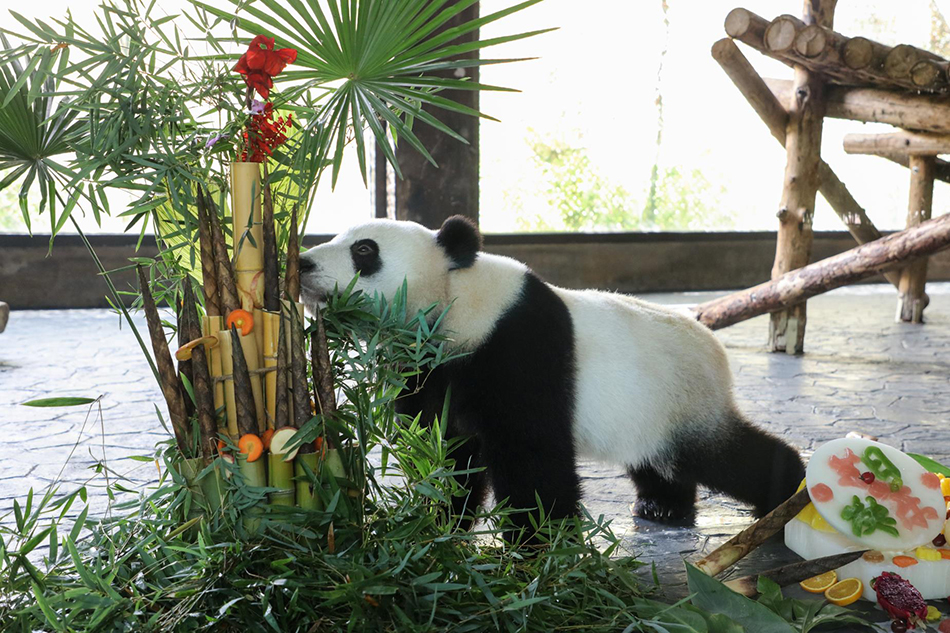 出生于2019年10月6日的大熊猫康康也快迎来两周岁生日。体重已超过80公斤,拥有一双明亮的大眼,性格活泼,大家喜欢叫它“小胖仔”。保育员说,大熊猫康康最“暖男”,对于准备的竹塔蛋糕是照单全收,看它时而端坐、时而平躺的享受着生日蛋糕,保育员也觉得特别满足。