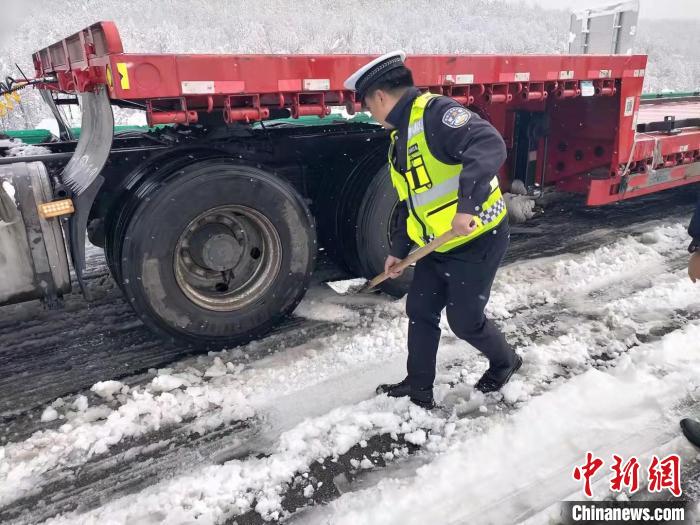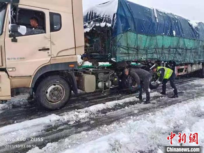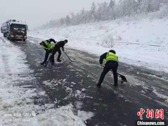 在国庆长假的第三天,内蒙古呼伦贝尔市阿荣旗迎来降雪,数小时的降雪和低温使辖区道路结冰打滑,给道路通行带来了严重的安全隐患。阿荣旗交警大队立即启动恶劣天气应急预案,全警出动疏堵保畅,确保辖区道路交通安全。(记者:张林虎)