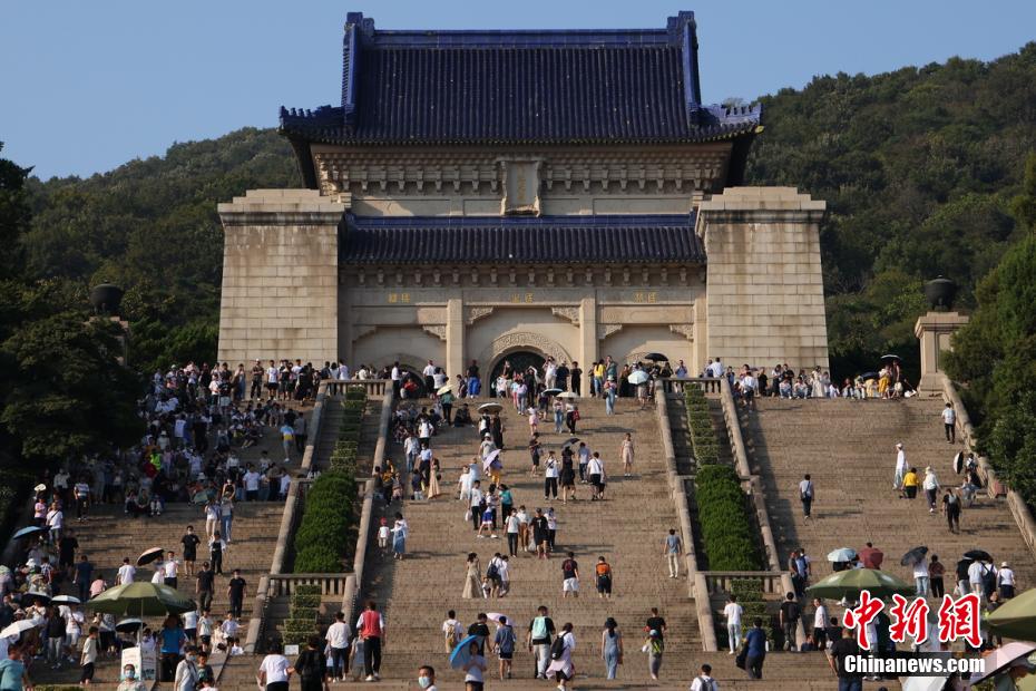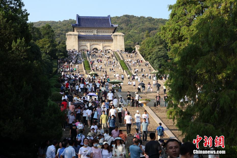 国庆假期,南京中山陵严格落实实名预约参观制度,加强秩序管理和场所环境消毒,确保民众有序参观。