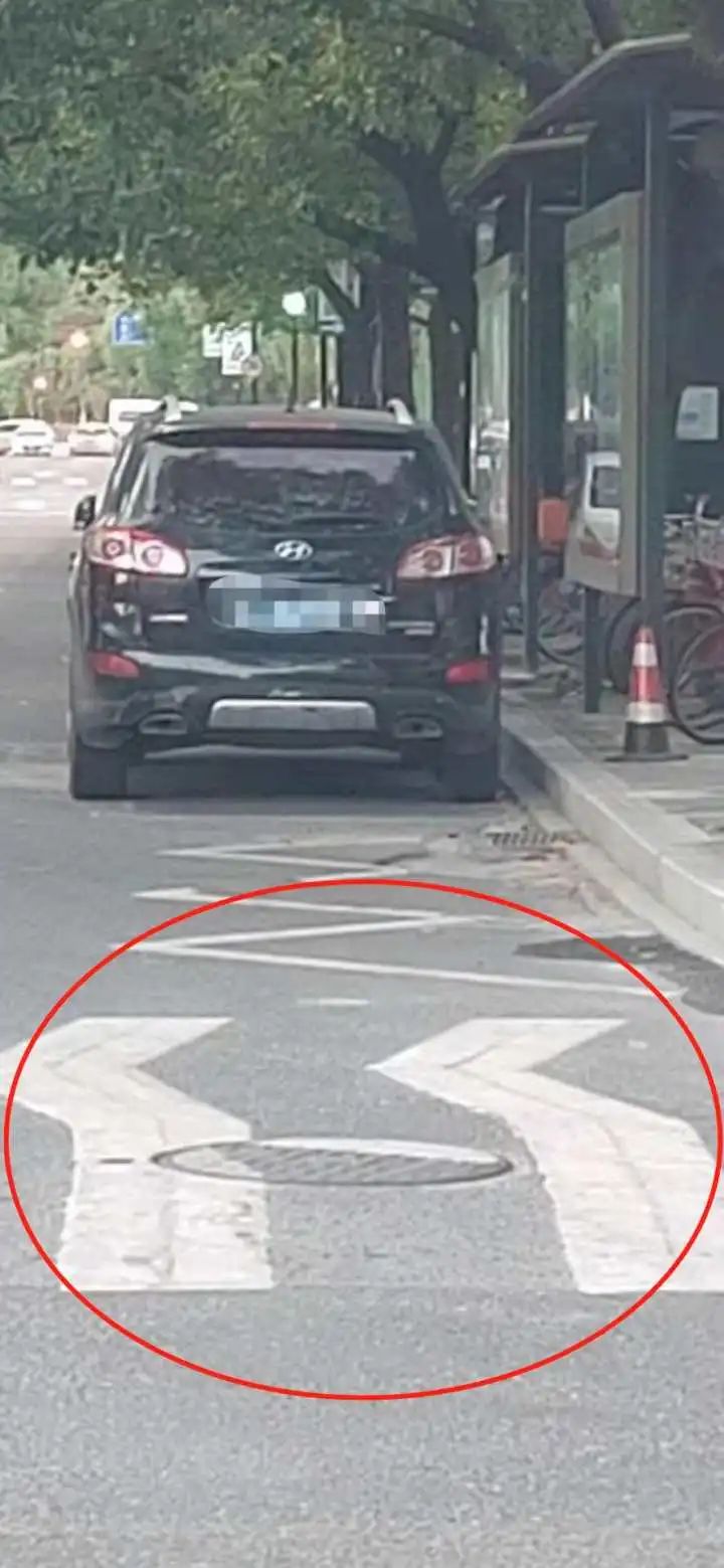 读者发来的照片上,确实可以看到有两道斑马线在靠右位置上,向前突出了一个尖角,这跟大家日常看到的横平竖直的斑马线有点不同。