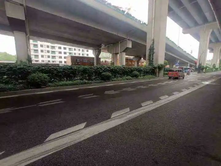 上图则是德胜路浙工大北门前的斑马线边的黄色网格线,这种黄色网格线很像消防登高区的禁停标志,黄色矩形格内画着黄色的“X”,网格就画在斑马线来车方向。