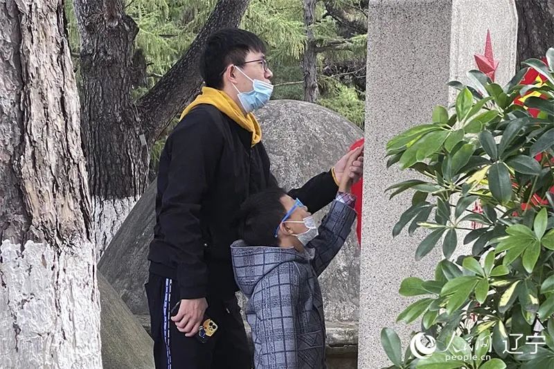 “将敌人全部炸死,自己也壮烈牺牲……”10月5日上午,沈阳抗美援朝烈士陵园内,一个年轻的父亲正扶着孩子的手,一字一顿地读一级英雄孙占元烈士的碑文。