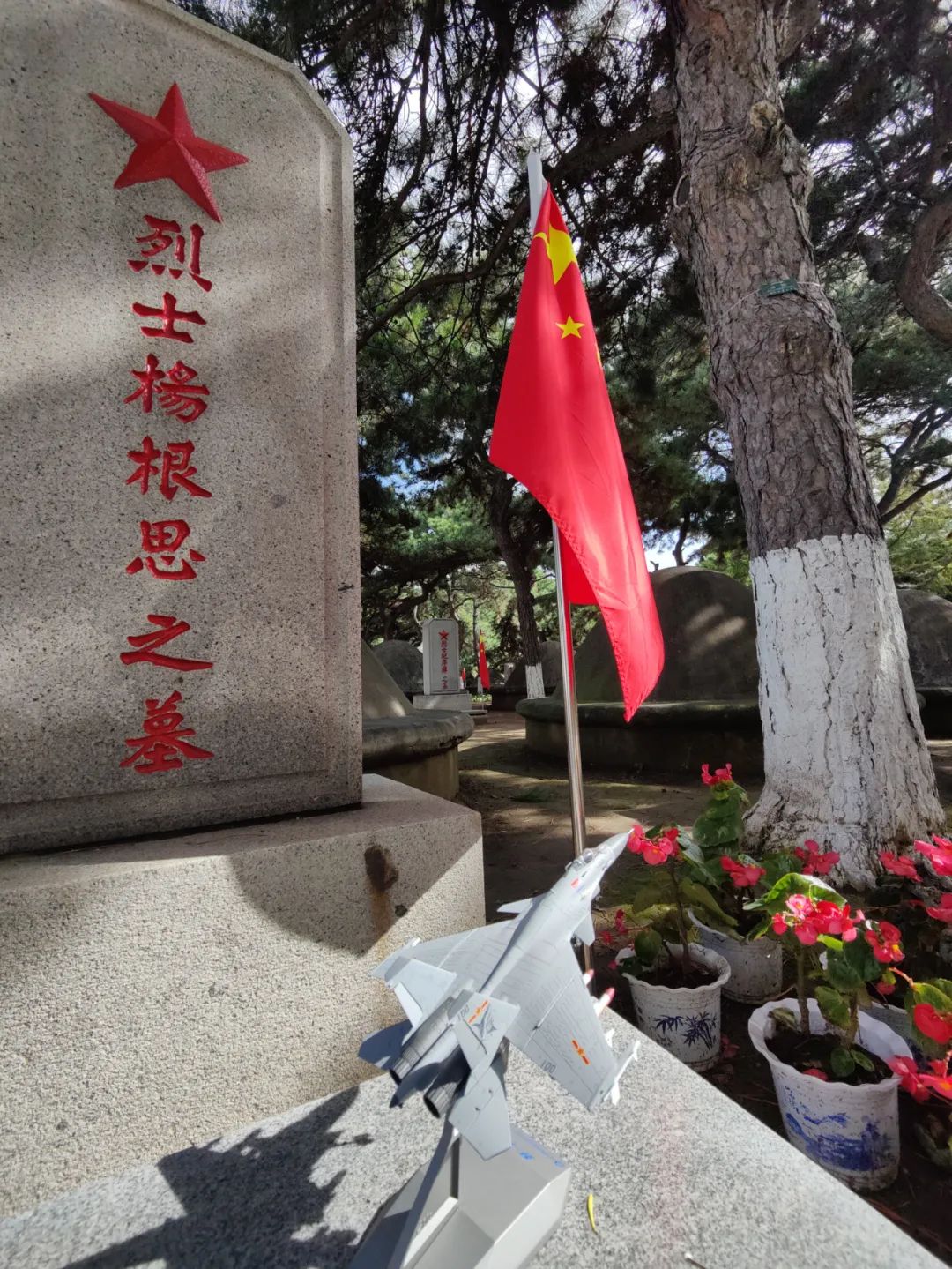 10月5日上午,杨根思烈士的墓前,除了鲜花之外,还摆放着一架沈阳市民送来的“歼-15”战斗机模型和几张“歼-20”战斗机的照片 。照片的背面留有一句话:“我们有了先进战机,强大空军!”