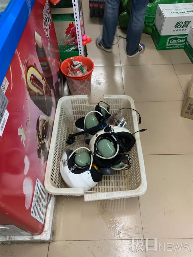 在事发现场附近的一家商户店里,极目新闻记者还看到了失事滑翔机上的三顶头盔。店主介绍说,事情正好发生在他的店门口,这三顶头盔,一顶是滑翔机司机的,一顶是女游客的,一顶可能是备用的。事发后,司机腿部受伤,女游客头部受伤,他也不敢贸然施救。是滑翔机司机和女游客那边的人帮忙施救,120急救车赶来后送医了。