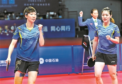 首盘双打比赛,奥运冠军组合陈梦/王曼昱迎战顾玉婷/张缤月,经过三局较量,山东鲁能的王牌组合以3比0的比分取胜。