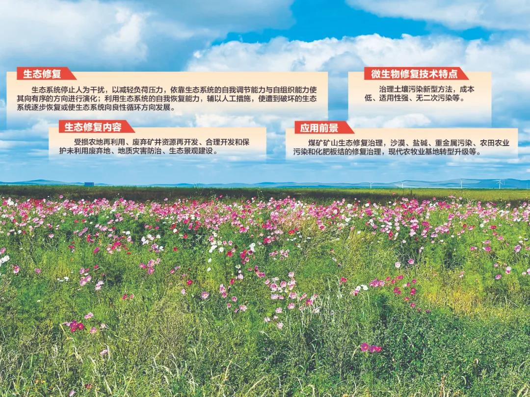“露天煤矿排土场无覆土微生物修复技术研究及示范”项目由国家电投集团远达环保工程有限公司、神州汉邦(北京)生物技术有限公司、国家电投内蒙古公司扎哈淖尔煤业公司共同完成。试验示范面积300亩,其中200亩恢复成原生态草场,100亩改良为农用耕地。