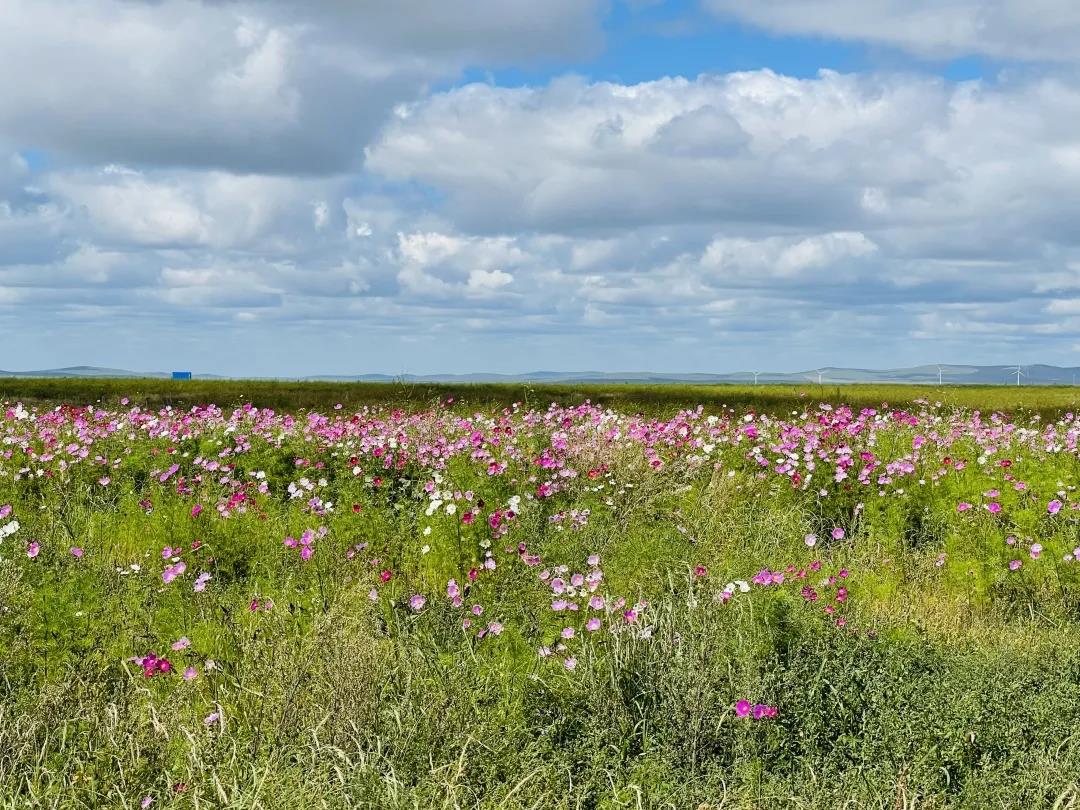 妍丽的波斯菊在风中舞动,冰草、羊草、黑麦草等各种牧草长势旺盛。正在领略草原风光的人们惊讶于从前寸草不生的“露天煤矿排土场”竟然摇身一变成为一道亮丽的风景线。