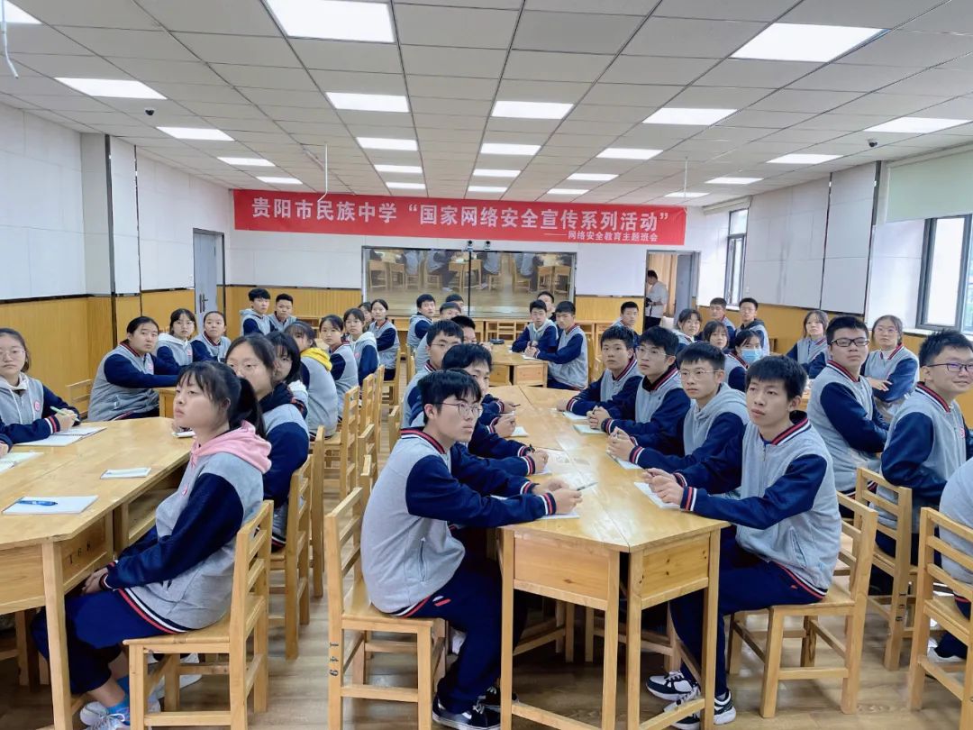 “你们经历过网购后自称是客服的人打电话给你退款的事情吗?”“经历过啊。”在贵阳市民族中学高二(10)班网络安全教育主题班会现场,该班班主任张军以图文结合的形式,从网民数量、网络诈骗手段、形式以及最终的目的等方面和同学们交流分享,提醒同学们在使用互联的过程中,一定要提高警惕,保护好自己的个人隐私和钱财。班会课上,大家争相发言,你一言我一语,纷纷“爆料”自己差点儿被骗的经历,现场好不热闹。