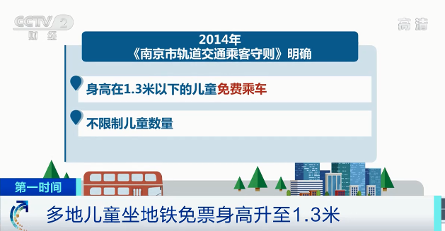 而早在2014年,《南京市轨道交通乘客守则》就已经明确:身高在1.3米以下的儿童免费乘车,不限制儿童数量。