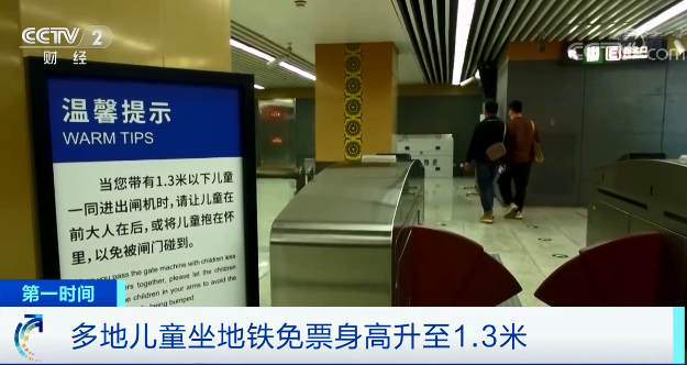 日前,记者在北京地铁发现,在地铁入口处放置有明显的提示牌,“儿童免票的身高标准为1.3米”。 据北京地铁客服人员介绍,北京市城市轨道交通定期修订相关规定,上次修订提高了儿童免票的身高标准,从1.2米提高为1.3米。此次修订对原来要求“带领两个以上身高不满1.3米的儿童乘车,一个儿童免票”的规定调整为:“身高1.3米及以下的儿童免费乘坐轨道交通”。 北京地铁工作人员表示,新规也是顾及到越来越多二胎家庭的权益。
