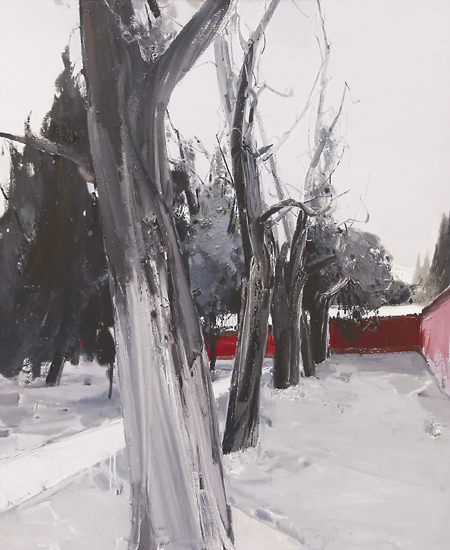 “江南并不是一个纯粹视觉层面的江南,而是中华文化璀璨集中的一个地方;不只是吴侬软语和小桥流水,也会有民族骨子里坚毅的内在精神,我想要挖掘这种精神内核。所以我选择了这张古柏古松前来参展,这里面蕴含着很多人对生命的感悟,对生命张力的追求。”创作《黛色参天之二十》的周建捷说。90后画家吴小非的《南山的星光》表现的是学习到深夜的学子等候最后一班公交车的场景,“画中未直接表现星光,而是用‘星光’一词隐喻莘莘学子的学习精神”。吴小非说,自己是苏州人,也在江南的语境中成长,将会一直尝试用自己所学去表达江南文化,表现江南风韵。