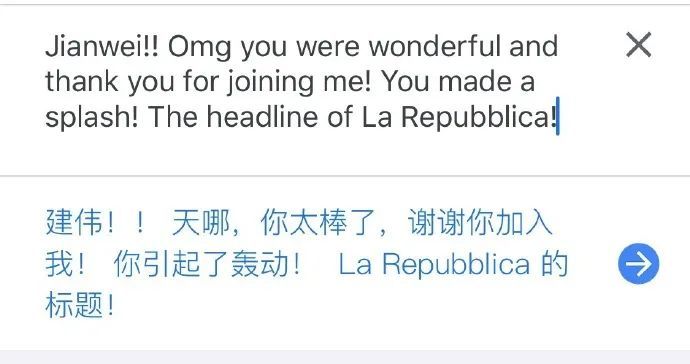 事后,刘建伟迅速火遍意大利。当地最著名的媒体之一《共和国报》也对此进行报道。奥罗佩萨第一时间将这个好消息分享给了刘建伟。