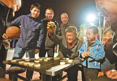 河北省滦平县金沟屯镇下营子村活动广场,村民在下棋。