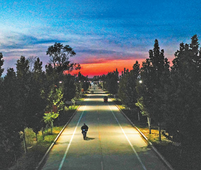 夜幕降临,张庄村路灯亮起,将村道装点一新。