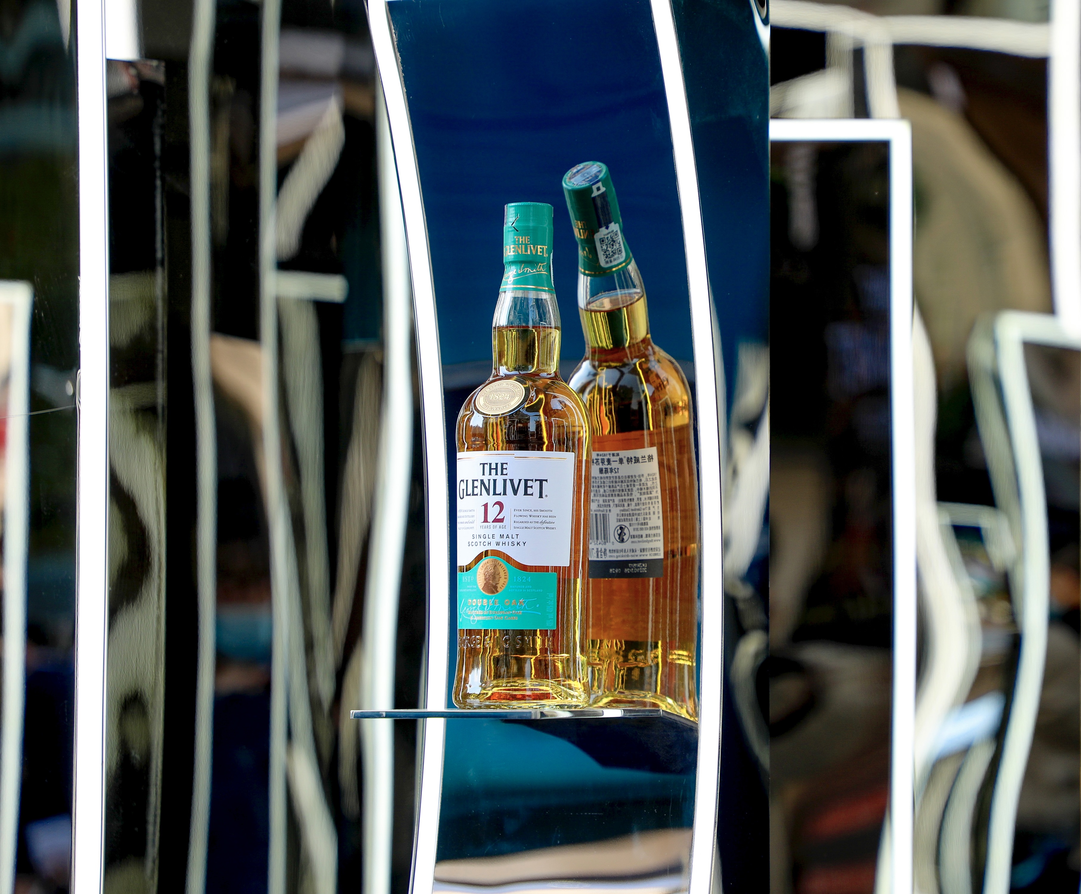 伴随着行进的脚步,时光穿梭之旅还在继续。作为首个获得法律批准、有权以“The Glenlivet”称谓进行命名的苏格兰威士忌品牌,格兰威特威士忌自创立以来便以卓越的品质备受消费者追捧,并成功于19世纪初私酿横行的斯佩赛河谷中脱颖而出。以多重镜面打造的“镜像空间”内,格兰威特12年以标杆之姿现于镜中,以奇幻的镜面反射效果彰显其打破陈规、颠覆传统的精神,同时也吸引来宾在此打卡留影。