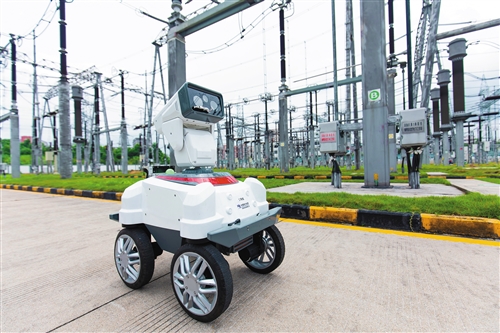 深圳供电局以新技术应用推动生产组织模式变革,提高全要素生产率。图为5G巡检机器人在变电站“巡逻”。