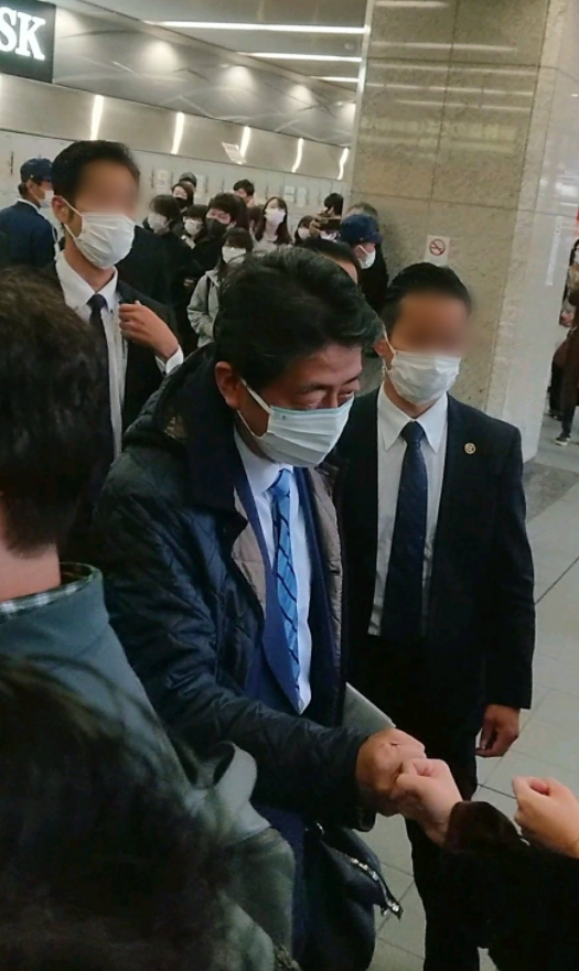 安倍在街头呼吁支持(推特截图)