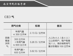 当前各市现行居民燃气阶梯气价标准是怎样?现代快报记者查询发现,各市居民燃气阶梯气价标准不同,在阶梯定档标准上多低于此次《通知》标准,待《通知》实施后,全省居民在燃气使用上将迎来实惠。例如,据南京市发改委2020年6月发布的《南京市民价格手册》显示,当前南京居民一档用气量上限标准为300立方米,价格为2.73元/立方米,二档用气量上限标准为600立方米,价格为3.28元/立方米,年用气量超过600立方米,价格为3.82元/立方米。