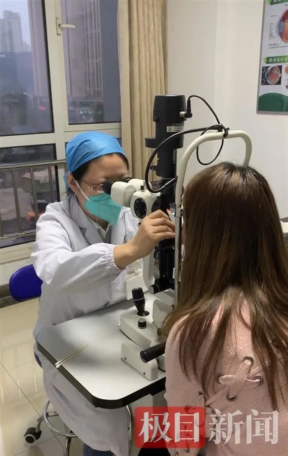 武汉市中医医院眼科主治医师常春丽在为患者检查眼睛