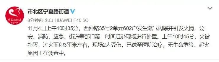 11月4日上午10时35分,西仲路35号2单元602户发生燃气闪爆并引发火情,公安、消防、应急、街道等部门第一时间赶赴现场进行处置。