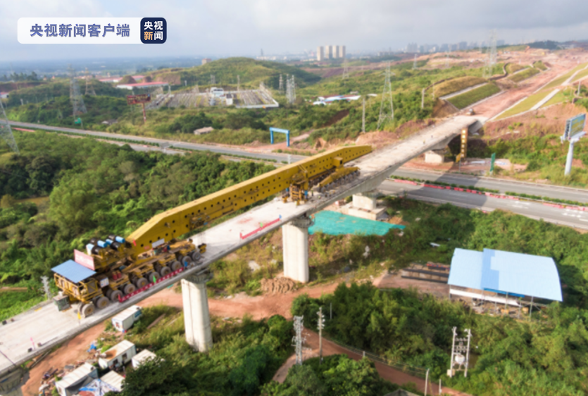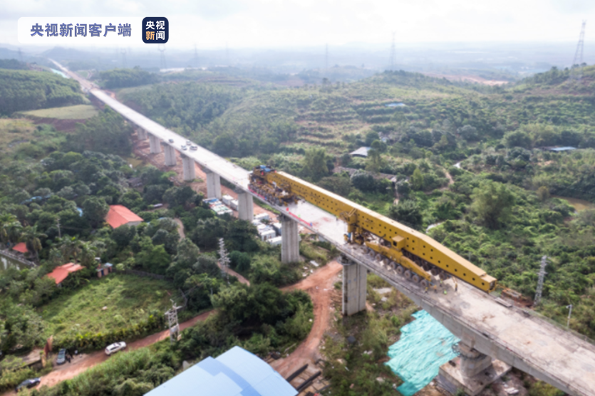 11月6日8时50分,我国首条直通中越边境口岸的高铁广西防城港至东兴铁路建设传来喜讯:随着楠木山双线特大桥最后一榀长32米、重715吨的箱梁架设完成,标志着这条铁路东兴段桥梁架设顺利完成。