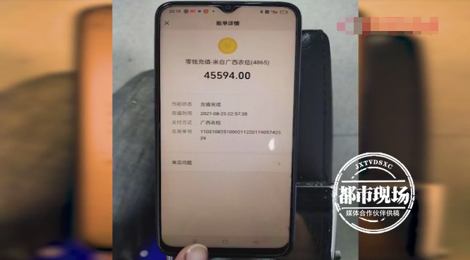 鹿寨县公安局城北派出所民警 蒙黄龙:九月初的时候,有一个微信账号从韦某的微信零钱里,把这46000多元转到他的微信账号内。