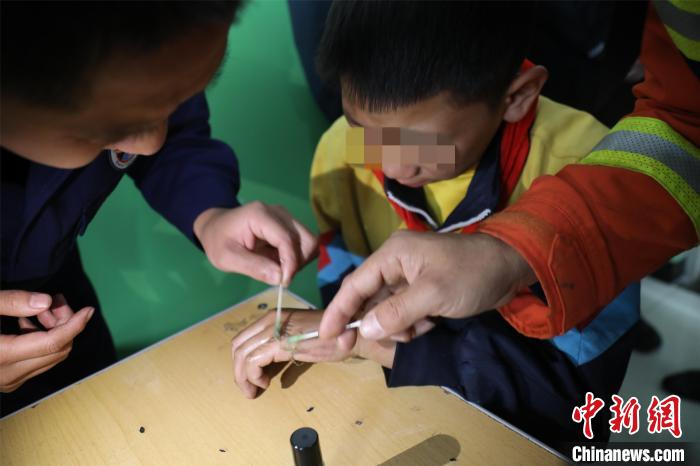 “我们采用的处置方法是,用棉棒沾上风油精、酒精、热水,一点一点对胶水进行溶解。”指挥员张俊伟说。