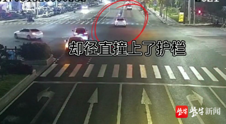 民警调取事故发生路口的视频监控看到,刘某驾车平缓行驶通过信号灯路口时,道路十分宽敞,车辆较少,视线开阔,刘某却“神奇般”地直接撞向了护栏,损坏了4节护栏。