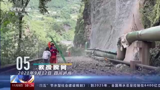 暴雨过后,山体滑坡,路边滚石不断飞落。徒步十公里赶到这里的消防员要将被隔绝的四名群众带出这最后的一段路。
