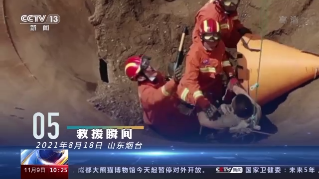 挡住了滚落的流沙,三名消防员合力将被困工人拉出险境。