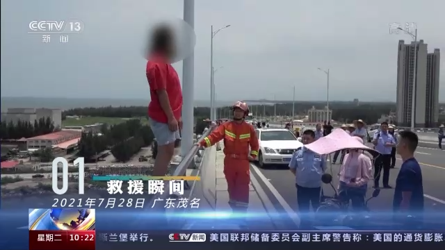 这次轻生女子站在了距水面50米的大桥上,现场风速很大。