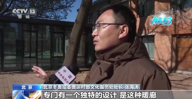 北京冬奥组委奥运村部文化服务处处长 张海涛:建筑与建筑之间有一个独特的设计,是一种暖廊,作用是避免工作人员出入使室内温度降低。