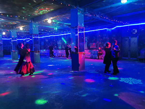 2019年元旦,我就开了这家舞厅,每年10月开到来年5月,去年受疫情影响,只开了两三个月。今年就10月份开了,疫情又发生后停业了,经常有舞友打电话问我啥时候开。舞厅晚上六点半开到九点,来的多是老人,偶尔有些年轻散客,过来喝酒、过生日。