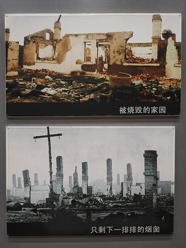 大火烧毁民房。拍摄自大兴安岭“五·六”火灾纪念馆。