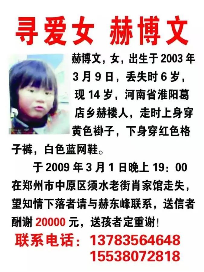 此后,卢丽和丈夫散发了10多万份寻人启事。丈夫赫东峰也和《失孤》里刘德华扮演的主角一样,带着条幅和寻人启事,骑坏了20多辆电动车,几乎寻遍了全国各个角落。