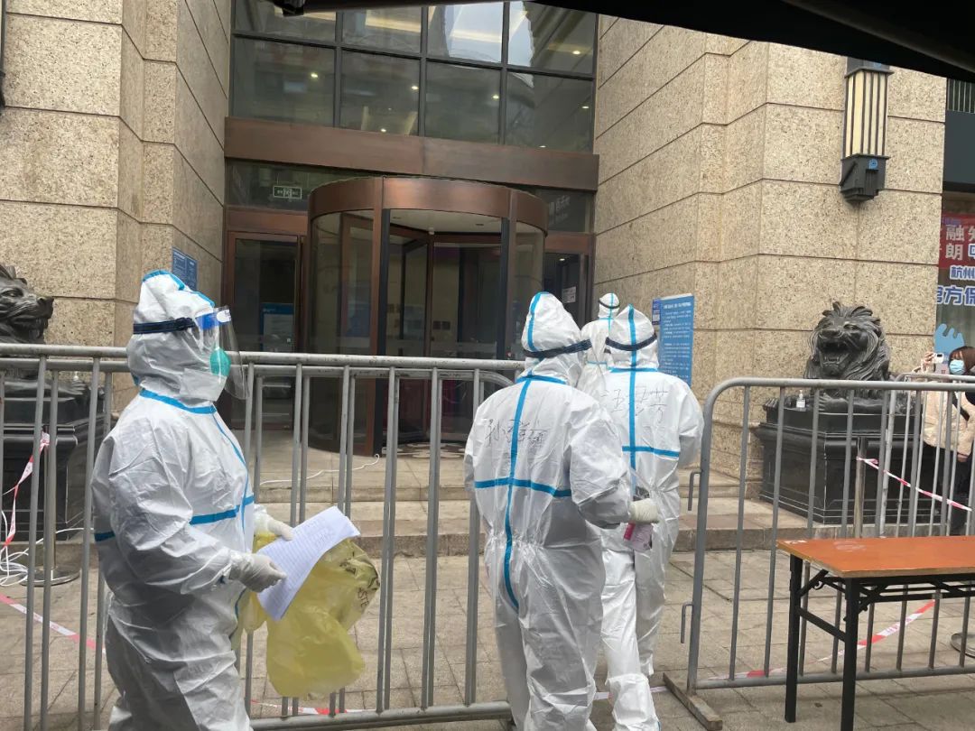 等面试结束已是9点40分。正当他准备离开,回家等消息时,没想到这时大门突然关了。他看到大厅外,来了一群医护人员,还有好多工作人员。“听说楼里有密接,当时我第一反应是,估计要留在楼里了。”