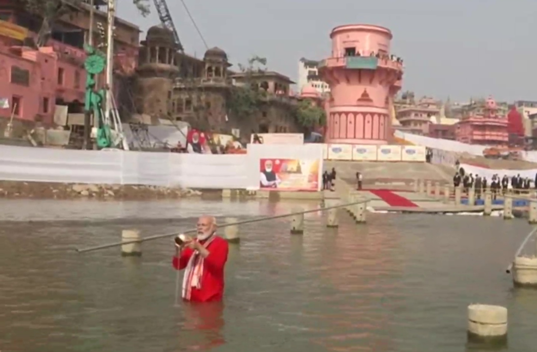 海外网12月14日电 据《今日印度》报道,当地时间13日,印度总理莫迪在宗教圣地瓦拉纳西视察期间,曾进入恒河沐浴祈祷。