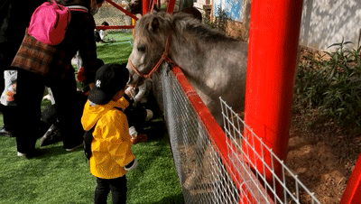 当时在园内游乐场旁的萌宠投喂区