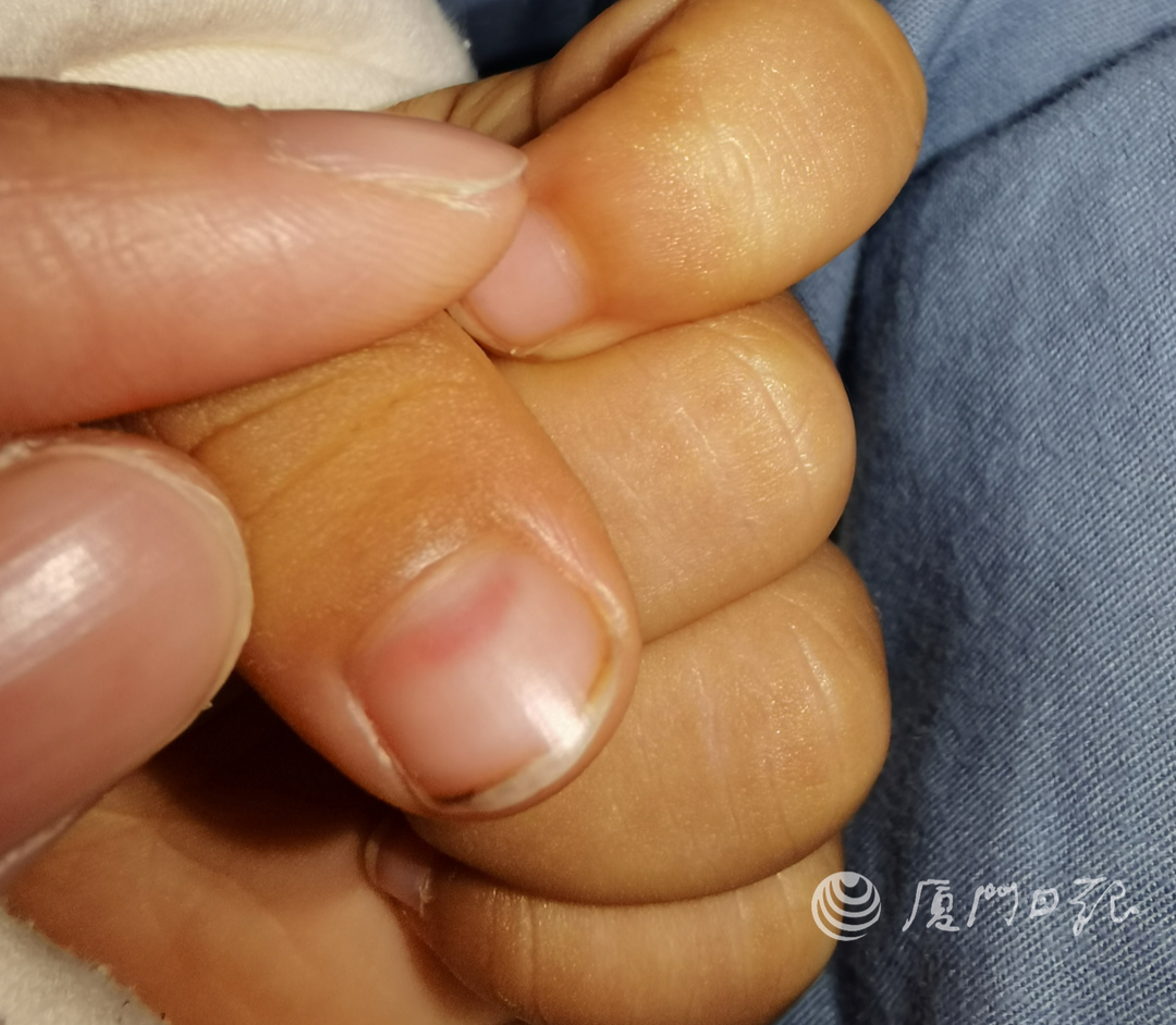 孩子指甲处被咬后出现淤血情况