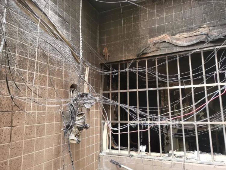 失火的房间里,墙面和天花板留下了大片焦黑,一张床被烧得只剩下床架,电脑主机、两台显示器和电脑桌都已烧毁。张先生说,原来墙上还有一台空调挂机,也在火灾中被付之一炬。