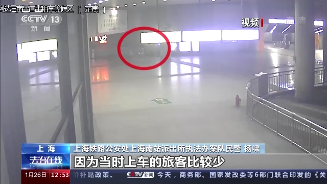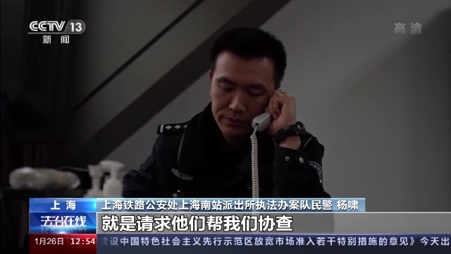 上海铁路公安处上海南站派出所执法办案队民警杨啸:(犯罪嫌疑人)以跑的速度很快就离开上海南站了,走了很大一圈之后他又回到南站,购买了一张车票又进入候车室,因为当时上车的旅客比较少,我们通过他当时这个时间段的购票,去看了实名制信息。