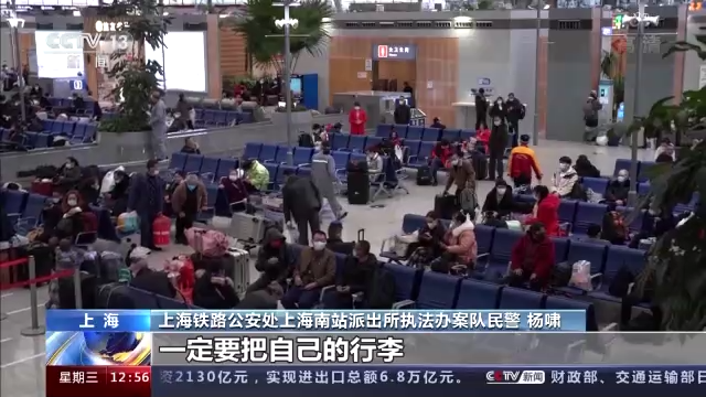 上海铁路公安处上海南站派出所执法办案队民警杨啸:现在正值春运,车站的旅客也逐渐增多了,广大旅客在进站检票的时候,把贵重物品一定要贴身看管。旅途劳顿,如果会睡着的话,一定要把自己的行李让同行人看管,不要交给陌生人看管,或者是存在小件寄存处,否则很容易造成自己的贵重物品被盗。